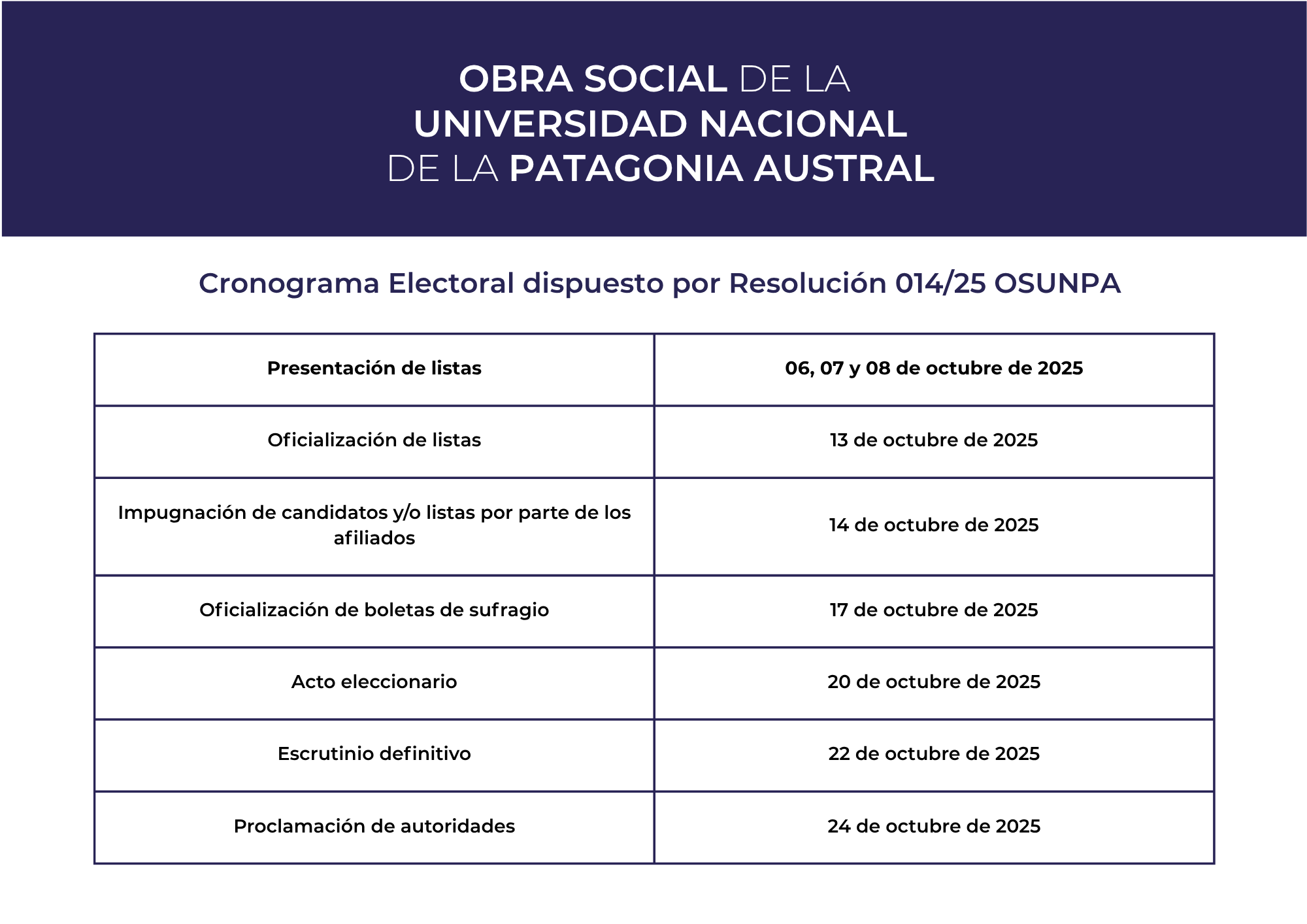 Cronograma Electoral dispuesto por Resolución 014/25 OSUNPA